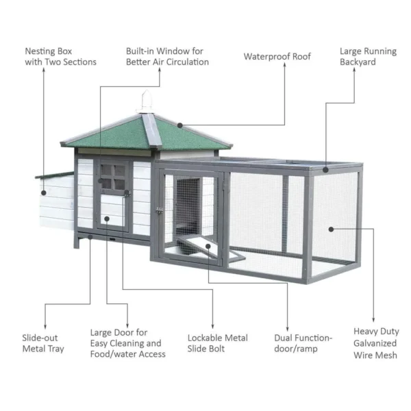 Spacious Design – At 6x8x6 feet, it gives you and your chickens plenty of room to move comfortably.
